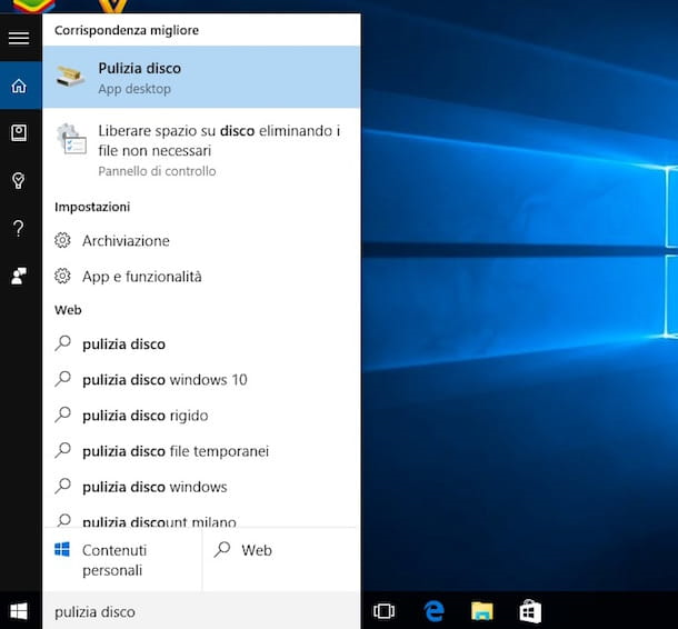 Per poter cancellare Windows Old devi affidarti allo strumento Pulizia disco, l’utility disponibile di serie sui sistemi operativi di casa Microsoft grazie alla quale è possibile gestire ed ottimizzare lo spazio di archiviazione del PC. Per accedere a Pulizia disco pigia sul pulsante Start annesso alla barra delle applicazioni, digita pulizia disco nel campo di ricerca visualizzato e poi fai clic sul primo risultato presente in elenco. In alternativa puoi avviare lo strumento Pulizia disco accedendo a Pannello di controllo, digitando amministrazione nella casella di ricerca collocata nella parte in alto a destra della finestra visualizzata, pigiando su Strumenti di amministrazione e facendo poi doppio clic sulla voce Pulizia disco.